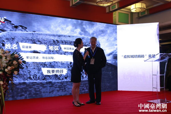 南京大屠殺幸存者葛道榮在“虛擬城墻”上捐出了第一塊緬懷逝者的“磚”(中國(guó)臺(tái)灣網(wǎng) 張亞靜 攝)