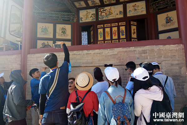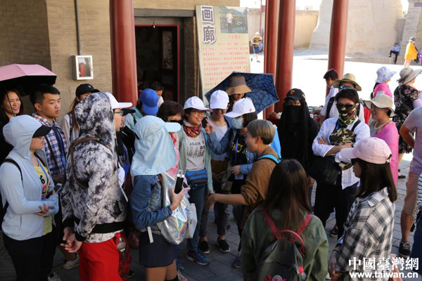 兩岸青年聽導游講述嘉峪關城樓的歷史故事。(中國臺灣網 張亞靜 攝)