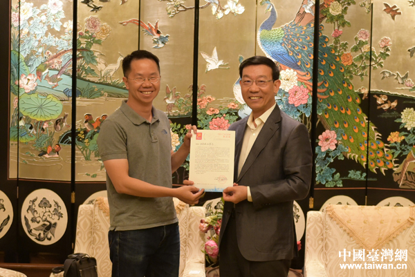 7月10日下午,機(jī)電商會(huì)臺(tái)北辦事處主任李榮民會(huì)見(jiàn)了臺(tái)灣自造者協(xié)會(huì)理事長(zhǎng)洪堯泰一行,雙方就推動(dòng)兩岸青創(chuàng)人員交流合作、創(chuàng)業(yè)就業(yè)等共同關(guān)心的話(huà)題交換了意見(jiàn)。(中國(guó)臺(tái)灣網(wǎng)發(fā))