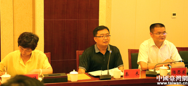 8月3日下午,北京市臺聯與在京臺商“一帶一路”參訪團與張掖市、山丹縣相關部門負責人座談交流。(中國臺灣網 王怡然 攝)