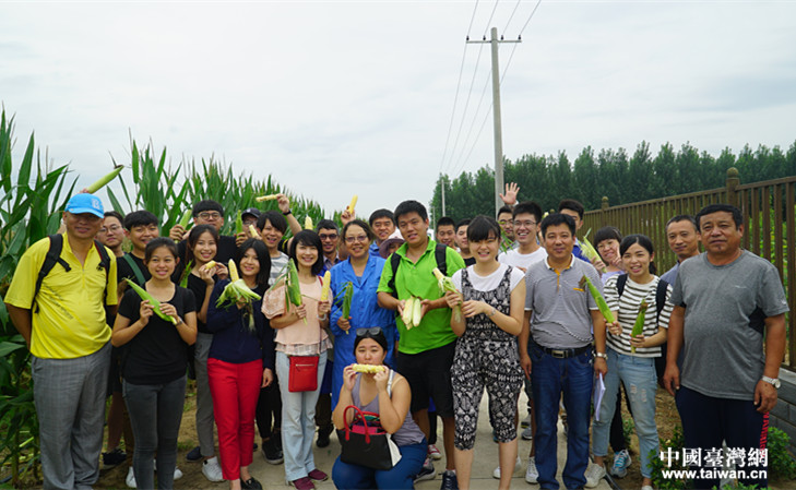 研習(xí)營一行在中國農(nóng)業(yè)大學(xué)涿州農(nóng)場考察玉米實(shí)驗(yàn)基地。(龐勝苗 供圖 中國臺(tái)灣網(wǎng) 發(fā))
