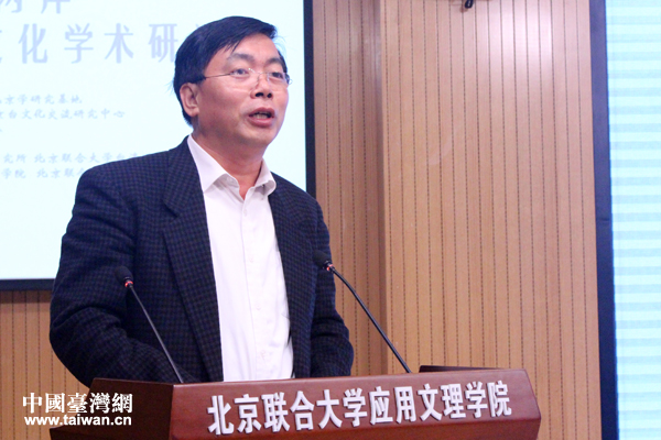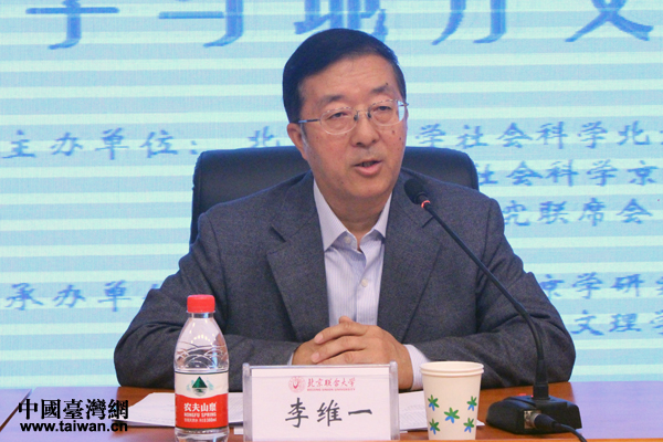 北京聯(lián)合大學(xué)臺灣研究院院長李維一主持研討會開幕式。(中國臺灣網(wǎng) 張潔 攝)