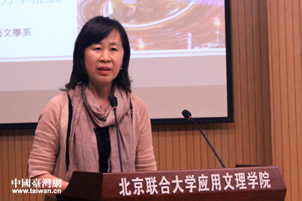臺灣清華大學(xué)中國語文學(xué)系教授陳惠齡圍繞“臺灣地方學(xué)推展概況”展開演講。(中國臺灣網(wǎng) 張潔 攝)