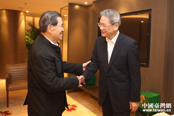 5日,中共中央臺辦、國務院臺辦主任張志軍在南京會見了前來參加2017兩岸企業家紫金山峰會的臺灣兩岸共同市場基金會榮譽董事長蕭萬長。(中國臺灣網 扶海濤 攝)