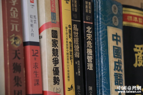 陳炳宏辦公室的書架除了與工作內(nèi)容相關(guān)的書籍,還擺著關(guān)于大陸、中國歷史的書籍。(中國臺灣網(wǎng) 張麗媛 攝)