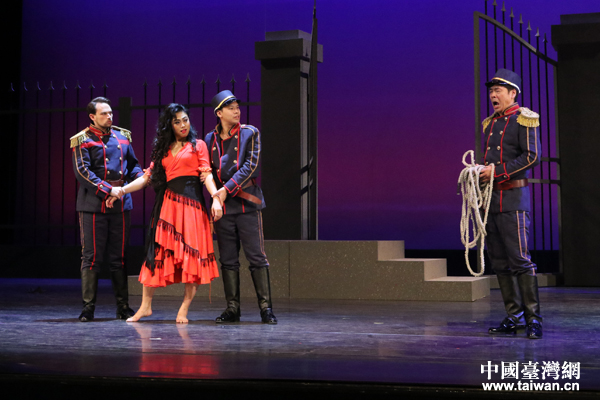 中國臺灣網1月8日訊 2018年1月7日晚,臺中市標志性建筑臺中市歌劇院外人聲鼎沸,燈光璀璨。這座2017年被評為“臺灣建筑特別獎”的歌劇院迎來了一場特殊精彩的演出,由寧波交響樂團和臺灣創世歌劇團聯合制作,中央音樂學院院長俞峰擔任藝術指導,中央音樂學院指揮系教授陳琳執棒,十大女中音歌唱家、中國音樂學院附中青年教師陳冠馥和臺灣著名歌唱家翁若佩領銜主演的全本法語歌劇《卡門》在這里隆重上演。