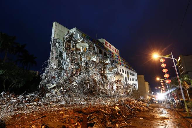 地震中坍塌的花蓮統帥大飯店。(圖)