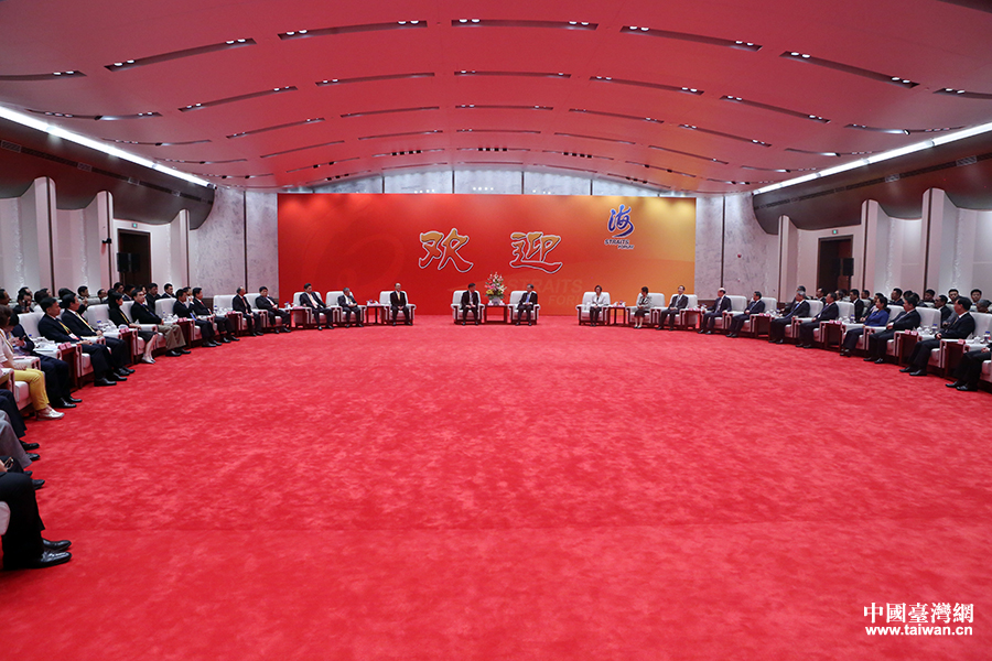 論壇開幕前,汪洋會見了出席論壇的部分兩岸嘉賓和主辦單位代表。(中國臺灣網(wǎng) 尹賽楠 攝)