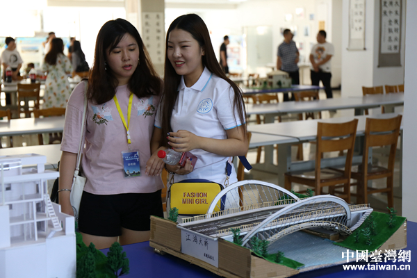 中國臺(tái)灣網(wǎng)7月5日陽泉訊 (記者 袁楚)兩岸大學(xué)生共同參與校園社團(tuán)活動(dòng),有真切的情感交流,也有務(wù)實(shí)的技藝切磋,有說有笑的和諧氛圍彌漫在山西工程技術(shù)學(xué)院的校園里。7月5日,第十一屆“華夏文明看山西·臺(tái)灣大學(xué)生山西行”活動(dòng)來到了山城陽泉,來自臺(tái)灣臺(tái)南藝術(shù)大學(xué)、南華大學(xué)的學(xué)生參訪團(tuán)與山西工程技術(shù)學(xué)院的師生進(jìn)行了親密的交流互動(dòng)。