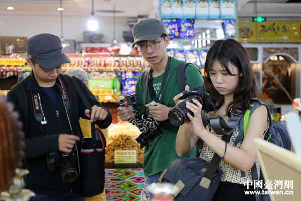 臺(tái)灣自媒體達(dá)人在新疆國際大巴扎進(jìn)行視頻創(chuàng)作。(中國臺(tái)灣網(wǎng) 王怡然 攝)