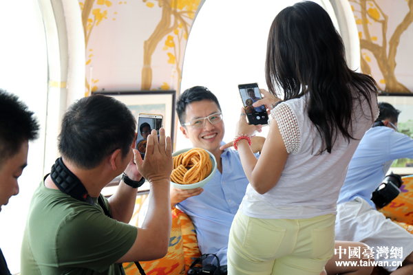 臺(tái)灣自媒體達(dá)人被新疆舞者的表演所吸引。(中國臺(tái)灣網(wǎng) 王怡然 攝)