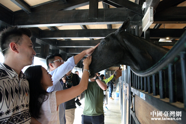 來自臺(tái)灣的自媒體達(dá)人與汗血馬近距離互動(dòng)。(中國臺(tái)灣網(wǎng) 王怡然 攝)