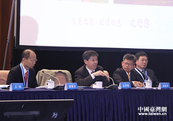 由中華全國臺灣同胞聯(lián)誼會、臺灣兩岸圓桌論壇協(xié)會共同主辦的第一屆兩岸民間圓桌論壇29日上午在京開幕。(中國臺灣網(wǎng) 普燕 攝)