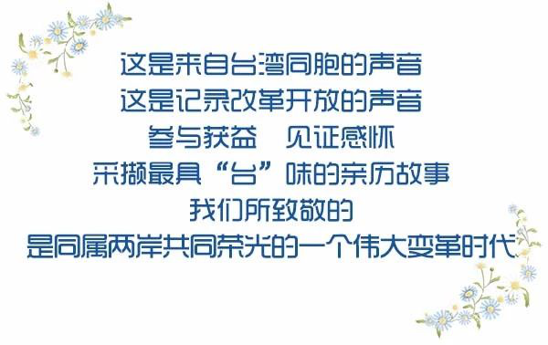 參與,受益,見證,這里要講述的,就是在弄潮逐浪的臺胞眼中,這一“中國奇跡”的四十年“進行時”。