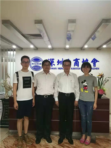 記者采訪深圳臺商協會會長陳忠和(右二)、秘書長盧政群(左二)