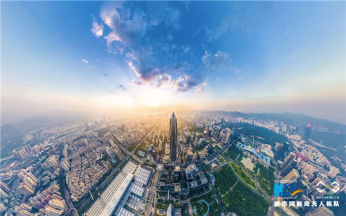航拍高聳入云的平安金融中心,它與繁華的深圳福田中心區相得益彰。(新華網 劉東林 攝)