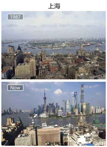 網上盛傳的上海今夕對比照片,因發展變化之大曾在朋友圈刷屏。