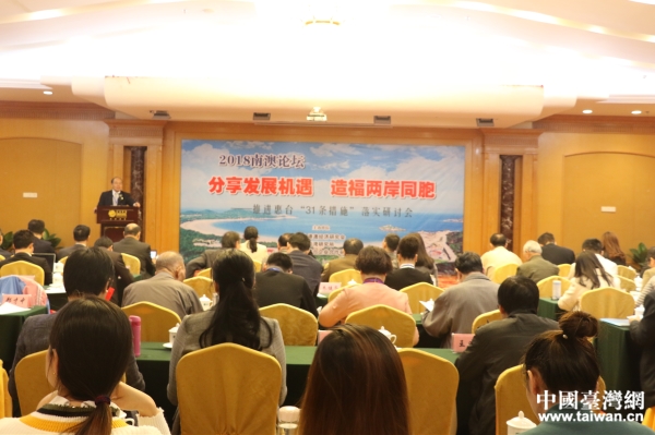 論壇現場,兩岸嘉賓圍繞“‘惠臺31項措施’意義重大影響深遠”、“‘九合一’選舉后深化兩岸經濟融合發展的路徑選擇”、“新形勢下兩岸經濟融合發展的推進策略探討”、“兩岸融合發展的意義、內涵與路徑”、“臺灣同胞與大陸同胞‘同等待遇’的法證基礎”等主題進行了深入的交流與探討。