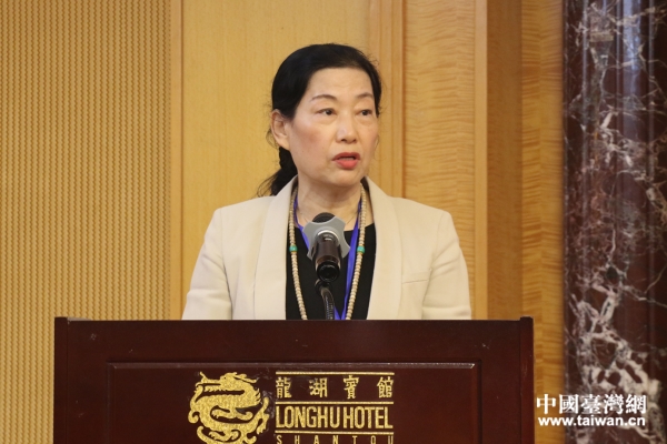 汕頭市人大常委會副主任、汕頭市臺港澳經濟研究會會長、汕頭大學粵臺企業合作研究院院長徐宗玲致辭。(中國臺灣網 李寧 攝)