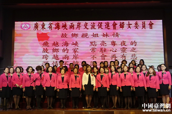 “飛越海峽,點亮粵夜之光。故鄉的家,常駐心靈之窗。跨越兩岸,不會再有悲傷。故鄉親,姐妹情,已經走向四方……”活動現場,林佳蓉帶領80余位會員代表合唱《故鄉親 姐妹情》,贏得到場嘉賓陣陣熱烈掌聲。