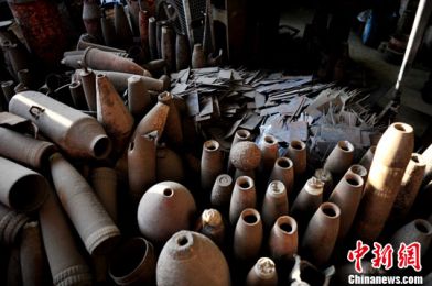 金門居民利用彈殼彈頭制造金門菜刀。中新網 王東明 攝