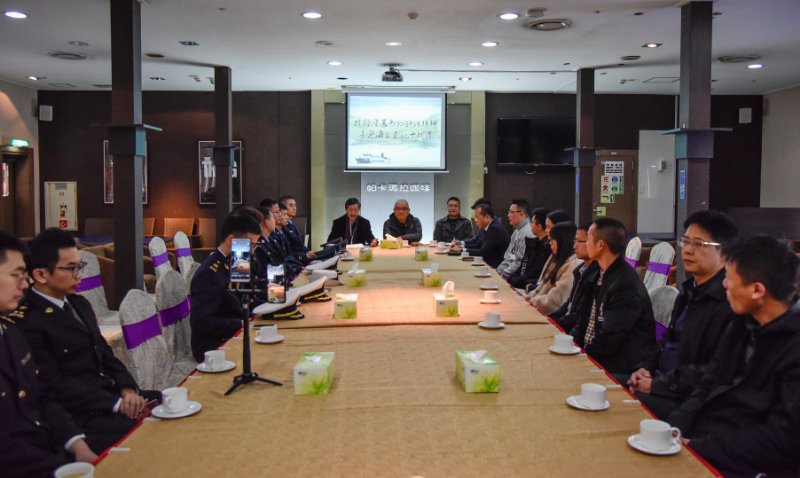 恰逢《告臺灣同胞書》發(fā)表40周年,習近平總書記1月2日在紀念會上作了題為《為實現(xiàn)民族偉大復(fù)興 推進祖國和平統(tǒng)一而共同奮斗》的重要講話,對新時代對臺工作指明了方向。為踐行習總書記講話精神,喜迎海上直航十周年,為新時代對臺海上直航工作謀好篇、布好局、開好頭,1月5日,浙臺(玉環(huán))經(jīng)貿(mào)合作區(qū)管委會在“中遠之星”輪上組織開展了一場別開生面的座談會。會上了邀請5位臺商、臺標代表講述、分享親身經(jīng)歷的直航故事,從當事人視角回顧大麥嶼港對臺海上直航十年來的發(fā)展歷程。