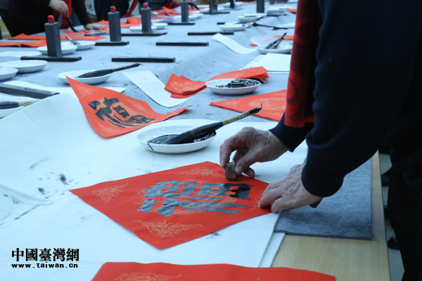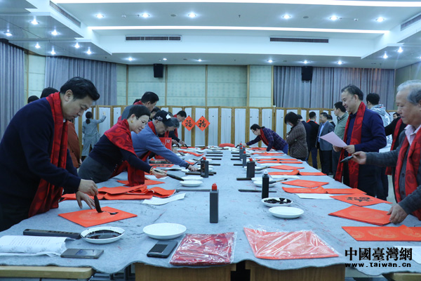 中國臺灣網2月1日北京訊 (記者 郭曉康)“新時代,新氣象,寫春聯,送萬福”。2月1日下午,中國書畫名家走進中央臺辦迎春聯誼活動在中央臺辦機關大樓隆重舉行。