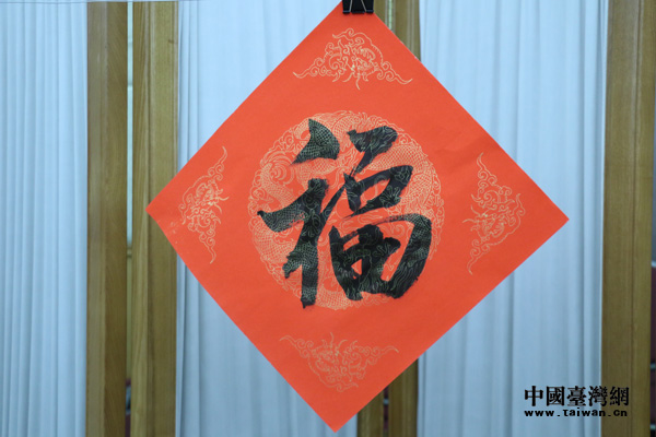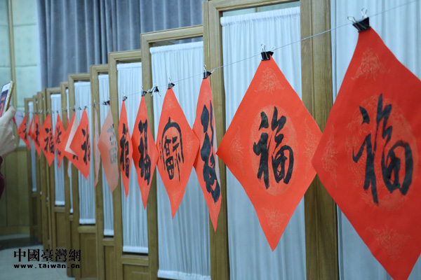 農歷豬年將至,活動現場一片祥和之氣,機關員工與書畫家們互動熱絡,互相祝福。書畫家們揮毫舞墨,真草隸篆,風格各異的“福”字躍然紙上。“共筑百年中國夢,點贊兩岸一家親。”一副副歌頌兩岸和美好生活的對聯,蘊含著海峽兩岸同胞祈盼祖國統一的美好愿望和新年美好祝福。