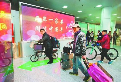 臺(tái)胞拖著大包小包通過“小三通”航線返臺(tái)過年。(資料圖片)