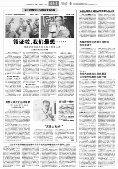 采訪完黃義成,我翻看有關(guān)資料,再融合同事們從廈門、平潭等地發(fā)來的采訪素材,文章基本成型。但還有個(gè)問題,作為對(duì)臺(tái)合作先行區(qū),這一天福建全省的臺(tái)灣居民居住證申請(qǐng)量究竟有多少?23時(shí)許,經(jīng)多方了解,我終于得到確切的數(shù)字:9月1日當(dāng)天,福建共受理1517例臺(tái)灣居民居住證申領(lǐng)。