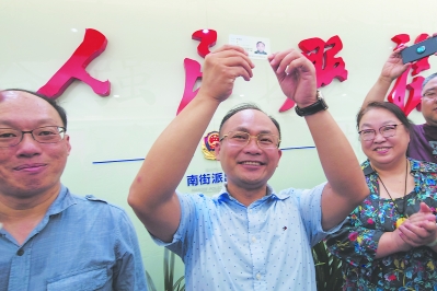 7時(shí)30分,同事在廈門金山派出所見到興沖沖趕來的廈門市臺(tái)商協(xié)會(huì)會(huì)長吳家瑩。8時(shí),吳家瑩第一個(gè)提交材料審核,然后拍照、采集指紋,5分鐘后他就拿到居住證領(lǐng)取憑證。