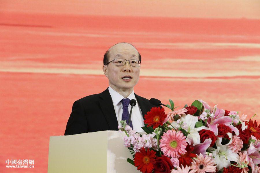 中央臺辦、國務(wù)院臺辦主任劉結(jié)一在兩岸青年交流合作北京峰會開幕式上致辭。(中國臺灣網(wǎng) 李寧 攝)