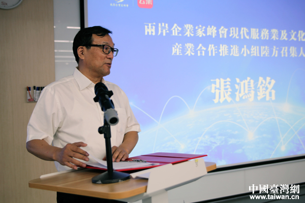 兩岸企業家峰會現代服務業及文創產業合作推進小組陸方召集人張鴻銘在啟動儀式上致辭。(中國臺灣網 王亮 攝)