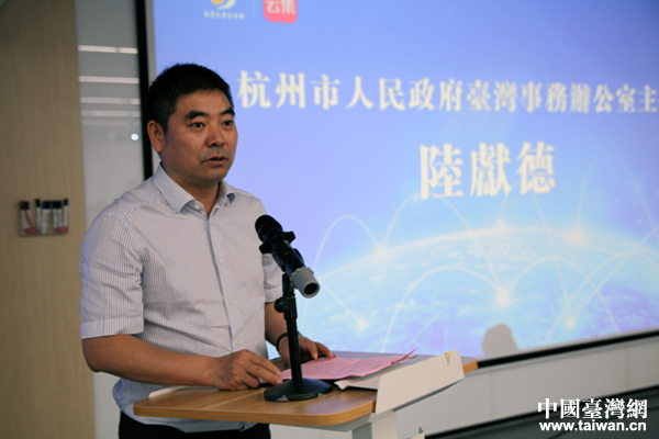 杭州市臺辦主任陸獻德在啟動儀式上致辭。(中國臺灣網 王亮 攝)