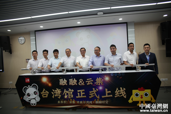 兩岸嘉賓共同開啟“融融&云集臺灣館”。(中國臺灣網 王亮 攝)