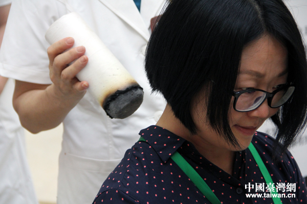 7月22日,2019“海峽兩岸記者廣西行”聯(lián)合采訪團走進廣西國際壯醫(yī)醫(yī)院,親身體驗廣西壯、瑤等民族醫(yī)藥獨特魅力。圖為采訪團成員體驗艾灸。(中國臺灣網(wǎng) 王怡然 攝)