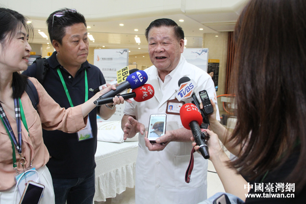 7月22日,2019“海峽兩岸記者廣西行”聯(lián)合采訪團走進廣西國際壯醫(yī)醫(yī)院,親身體驗廣西壯、瑤等民族醫(yī)藥獨特魅力。圖為采訪團成員接受廣西當?shù)孛襟w采訪。(中國臺灣網(wǎng) 王怡然 攝)