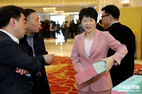 臺灣形象策略聯盟執行主席林采霖發表對獲獎作品的評價。她是2018中國改革開放40年設計人特殊功勛獎獲得者。(中國臺灣網發)