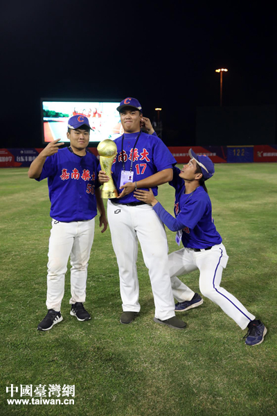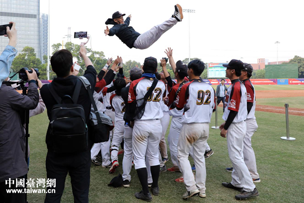 世新大學棒球隊慶祝奪冠。(中國臺灣網(wǎng)發(fā))