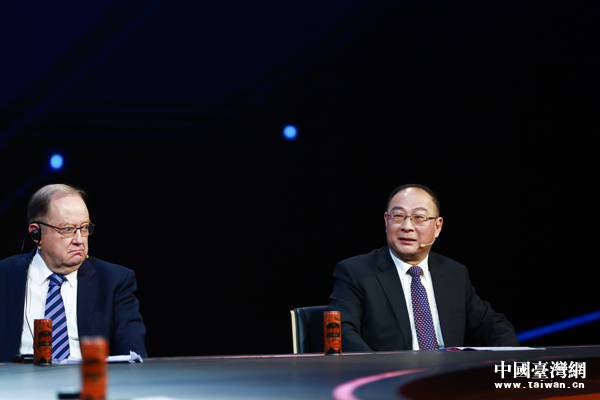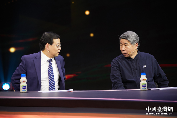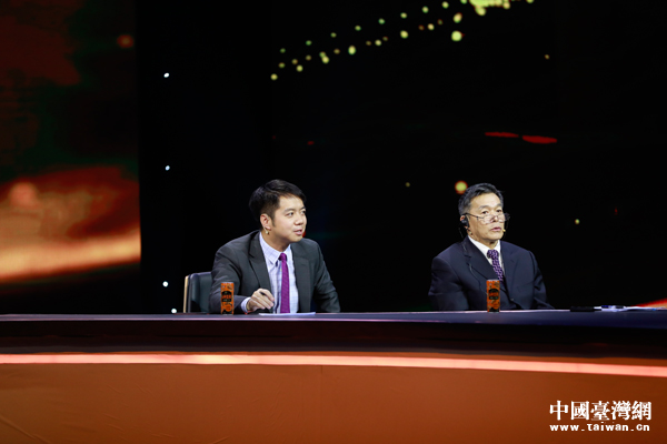 復旦大學中國研究院研究員、東南衛視《中國正在說》節目主持人鄭若麟(中)。(中國臺灣網發)