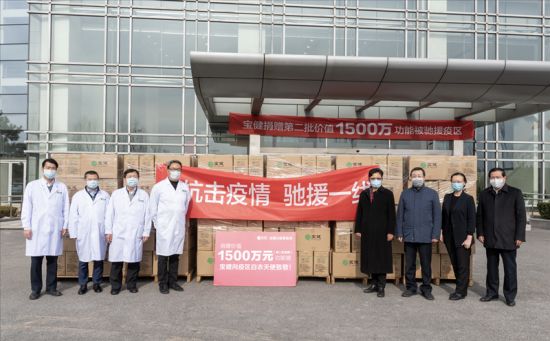 2月18日,價值1500萬元的寶健復合功能被馳援湖北抗疫前線白衣天使。短短一個月內,寶健公司及寶健公益基金會、廣大寶健愛心志愿者已累計向湖北、廣西、北京等地抗疫一線捐出超過2600萬元物資。