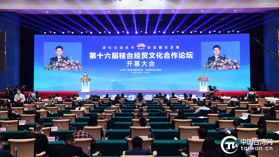 中國臺灣網11月2日南寧訊 第16屆桂臺經貿文化合作論壇開幕大會2日在廣西壯族自治區首府南寧市舉辦。中共中央臺辦、國務院臺辦副主任裴金佳致辭。