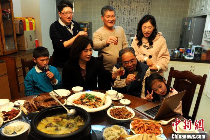 11日,大年三十晚上6點(diǎn)整,臺商曾文子一家人開啟他們在大陸“別樣”的團(tuán)圓飯,并與臺灣親朋好友視頻連線相互傳遞新年祝福,一起“線上圍爐”。