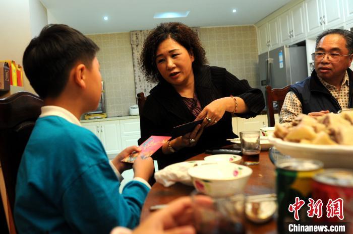 臺商曾文子給孫子發(fā)新年紅包。 張金川 攝