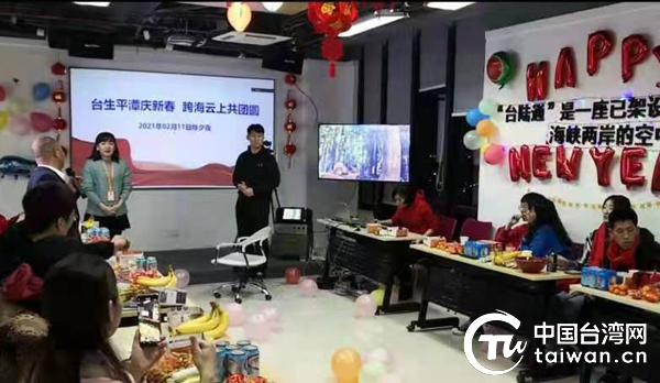 農(nóng)歷大年三十當(dāng)晚,“臺生平潭慶新春 跨海云上共團(tuán)圓”聯(lián)歡活動在平潭臺創(chuàng)園“臺陸通”公司舉行。(中國臺灣網(wǎng)發(fā))