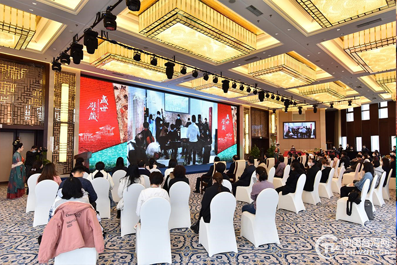2021年“盛世壁藏——唐代壁畫文化特展·首部曲”走進臺灣校園巡展活動開幕式通過視頻連線方式在兩岸舉行。圖為開幕式北京現場。(中國臺灣網發)