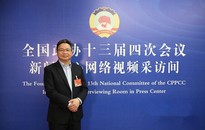 圖為全國臺聯副會長楊毅周委員。全國政協十三屆四次會議新聞中心網絡視頻采訪間供圖