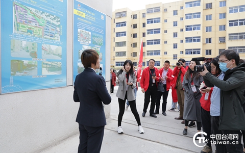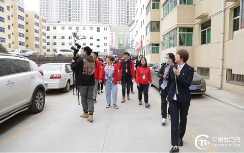 參加“在這里讀懂初心使命——網絡媒體革命老區行”的媒體記者們來到延安市寶塔區向陽社區參訪。(中國臺灣網 李杰 攝)