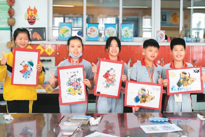圖為兩岸學生展示親手創作的年畫。