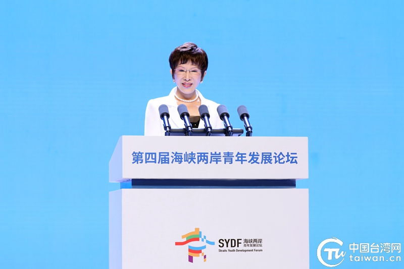 中國國民黨前主席、臺灣中華青雁和平教育基金會董事長洪秀柱7月23日在第四屆海峽兩岸青年發展論壇開幕式上致辭。 (中國臺灣網 尹賽楠 攝)